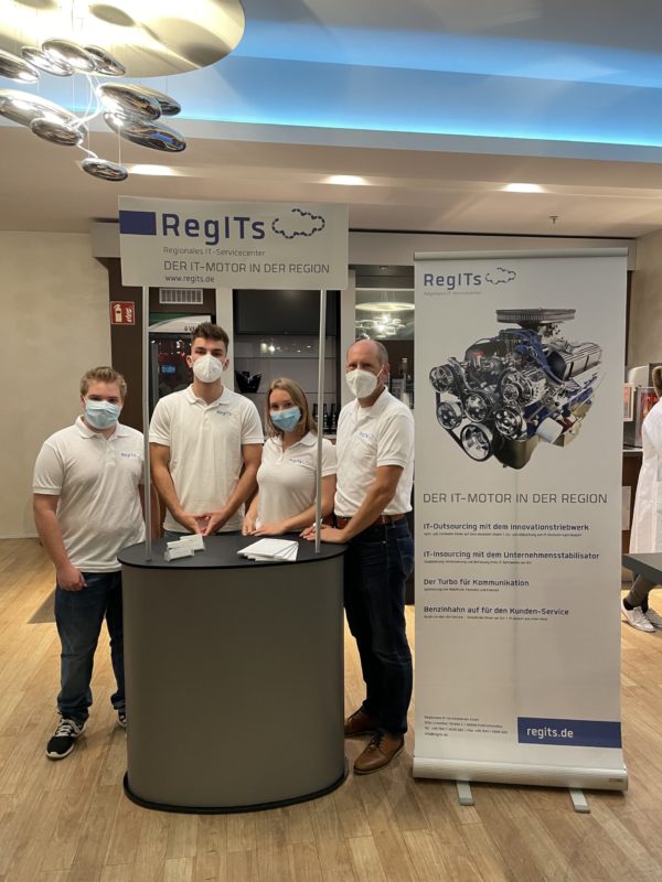 RegITs Regionales IT-Servicecenter GmbH präsentierte sich am 27. Januar 2024 als Aussteller beim Tag der offenen Tür an der Zeppelin-Gewerbeschule in Konstanz. RegITs war einer von 26 Betrieben aus der Bodensee-Region, die Ihr Ausbildungsangebot präsentierten. Den Besucher*innen bot sich ein breites Spektrum an technischen und kaufmännischen Ausbildungsberufen. Anna-Lena Herold, Saber Safi und Ludwig Herold konnten…